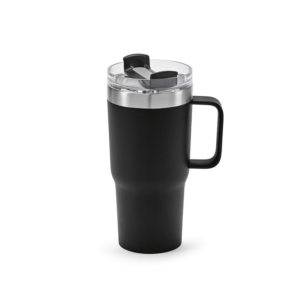 Neman Mug 580ml (490ml net) mug and crafted from recycled stainless steel, the double-wall insulation keeps drinks perfect (6 hours hot and 18 hours cold). The rotating lid seals the deal and you can also use with a straw. Available in 7 stylish colours. A sustainable choice packed inside an individual kraft box.