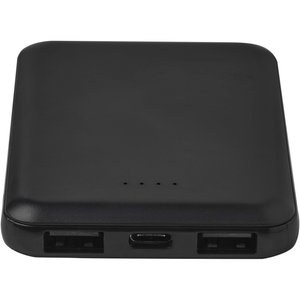 Power bank with slim and elegant design and Type-C in/output port and 2x USB-A ports which means that 3 devices can be charged simultaneously. The power bank features a 5000 mAh lithium polymer battery which delivers a total output power of max. 10W. This power bank is made of 23% RCS certified recycled plastic. Delivered with a TPE Type-C to USB-A charging cable.