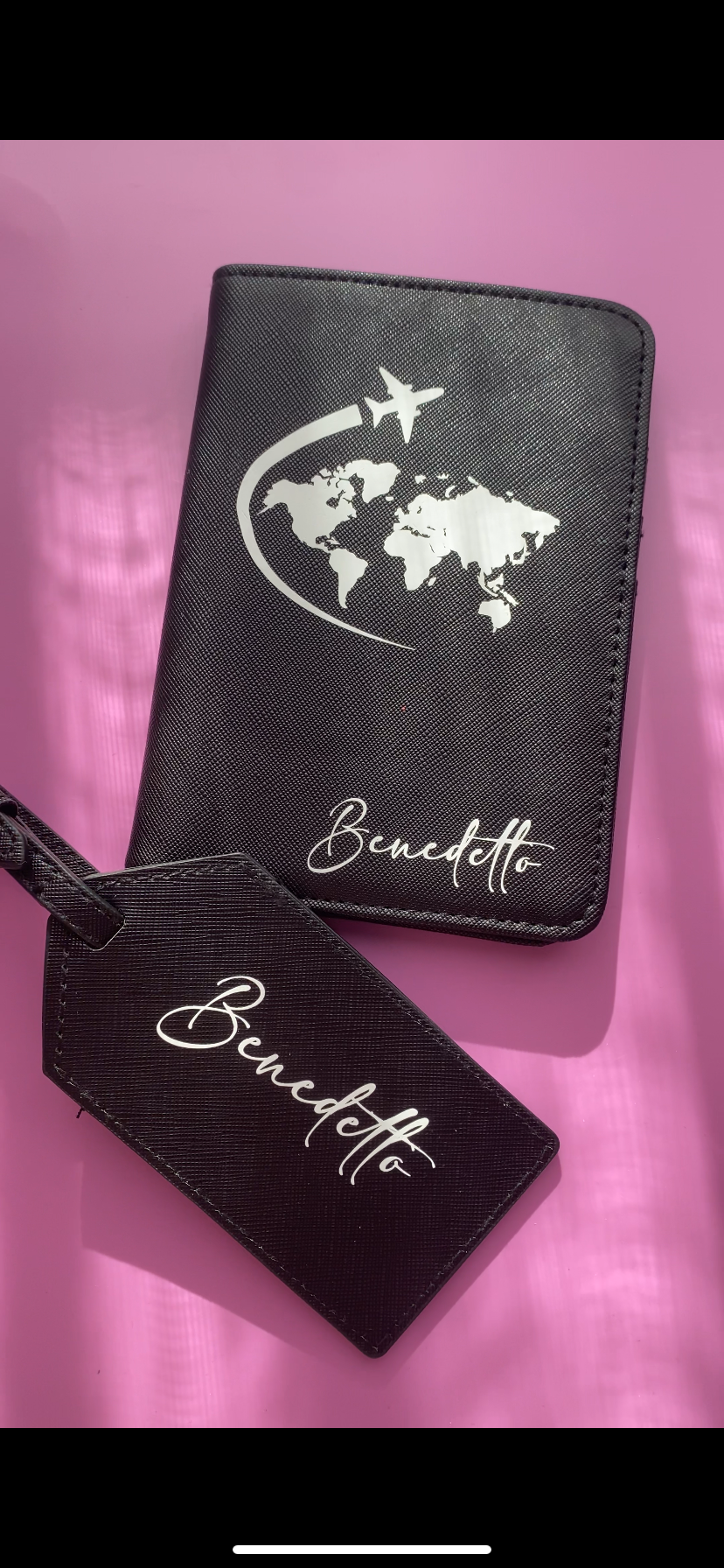 Travel organizer set in Saffiano-style PU leather providing elegant storage and security for essentials. This stylish accessory features a soft-touch lining and gold-tone metal accents, combining fashion with functionality. Made from 100% fine-grain saffiano imitation leather, it is designed for both personal use and professional customization. The set includes two pieces with a TearAway label for easy rebranding and a specific print surface on the pouch. Ideal for wholesale orders, corporate gifts, or boutique retail collections, these organizers offer a premium feel for travel essentials.
