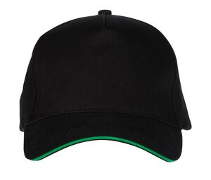 Black&Match BM910 - Black/Kelly Green - 100% cotton 5-panel cap