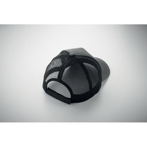 5 panel trucker cap with front panel and visor in 250 gr/m² cotton, back mesh in polyester, hook and loop closure.