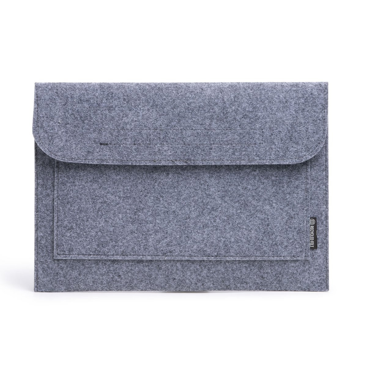Computer case made of RPET felt with a melange finish. It can contain a 15" laptop. Two internal compartments. Velcro closure flap.