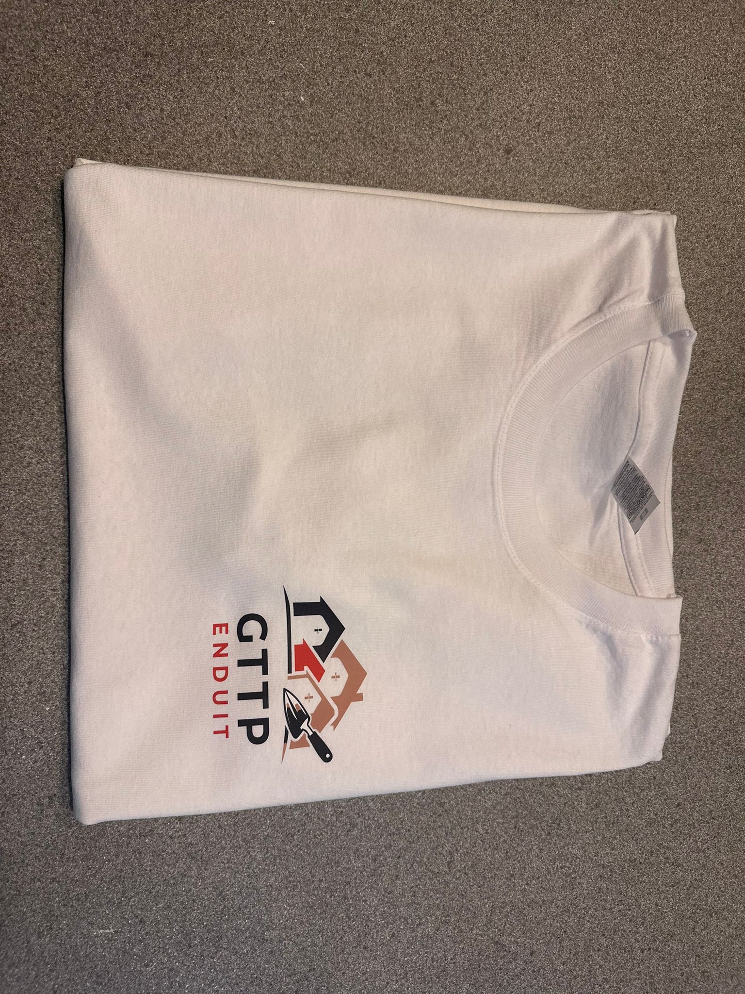 The fabric weight is 195gsm for colored shirts and 185gsm for white shirts.