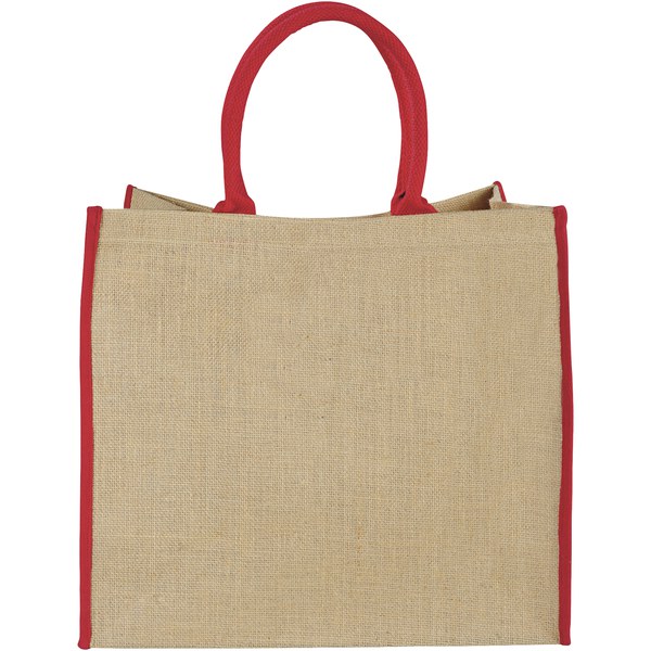 Harry coloured edge jute tote bag 25L - Natural / Red - EgotierPro 120182