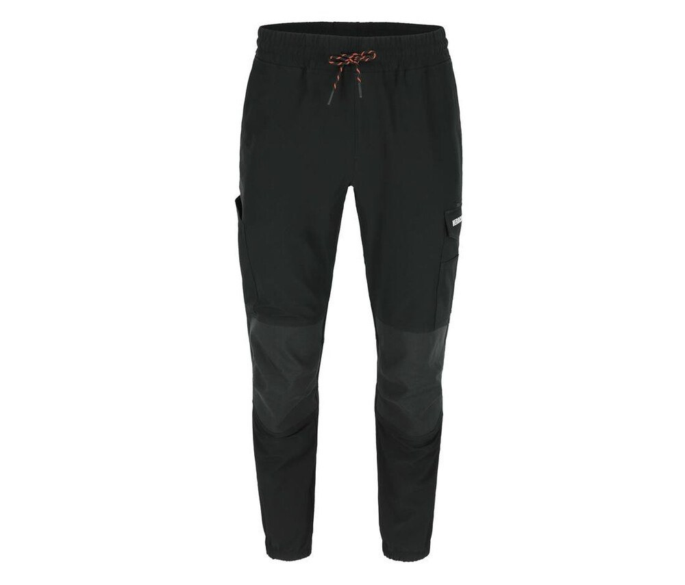 4-way stretch. Elasticated waistband with drawcord. 2 side pockets. 1 thigh pocket with zip. 1 thigh pocket with flap. 1 small pocket on thigh pocket. 1 ruler pocket. 2 back pockets. Reinforced knees. EN ISO 13688:2013 certified.