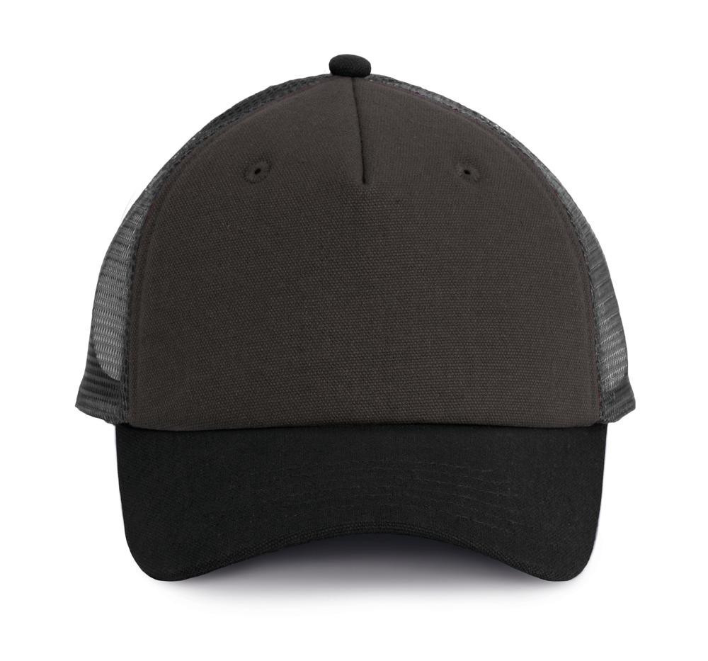 The K-up brand KP170 Trucker cap is a 5-panel cap ; Made from an easy-to-wash fabric, this fabric is a blend of 98% cotton and 2% polyester , all with a weight of 310 g/m² .