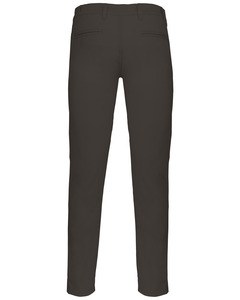 Men's modern fit chino pants in 245 gsm cotton twill provide a professional look with everyday comfort. Ideal for corporate uniforms or casual wear. These Kariban K740 chinos feature a contemporary fitted cut that is slightly flared, ensuring a chic silhouette for hospitality staff, corporate teams, or casual wardrobes. The fabric is enzyme-washed for a softer feel and enhanced durability. With 2% elastane, they offer the necessary flexibility for active work environments or daily commutes. The construction includes reinforced piping on back pockets and sturdy belt loops for long-lasting wear. Whether purchased blank for a minimalist professional style or customized via embroidery or screen printing for brand identity, these chinos serve as a reliable foundation. They are an excellent choice for businesses looking for high-quality bulk apparel that maintains its shape and appearance. Available for wholesale and individual purchase.