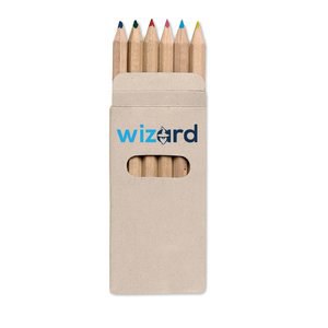 Colored pencils in a carton box for compact and portable creative use. These 6 essential colors are housed in a slim cardboard package, making them a practical choice for schools, workshops, and promotional events. The carton surface allows for easy branding, enabling businesses to create custom giveaway sets for children or event attendees. Available for bulk purchase, these pencils serve as a versatile blank for creative projects or a personalized marketing tool. The lightweight design ensures they fit easily into pockets or small bags, providing a convenient drawing solution on the go. Whether used as a simple classroom basic or as a customized corporate gift, this set offers reliability and value.