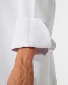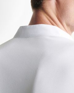 Mandarin collar and tailored sleeves with turn-ups on cuffs