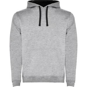 Two-colour hoodie with double fabric, contrasting adjustable drawcord, reinforced covered seams in collar and kangaroo style pocket.