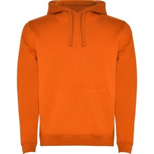 Two-colour hoodie with double fabric, contrasting adjustable drawcord, reinforced covered seams in collar and kangaroo style pocket.