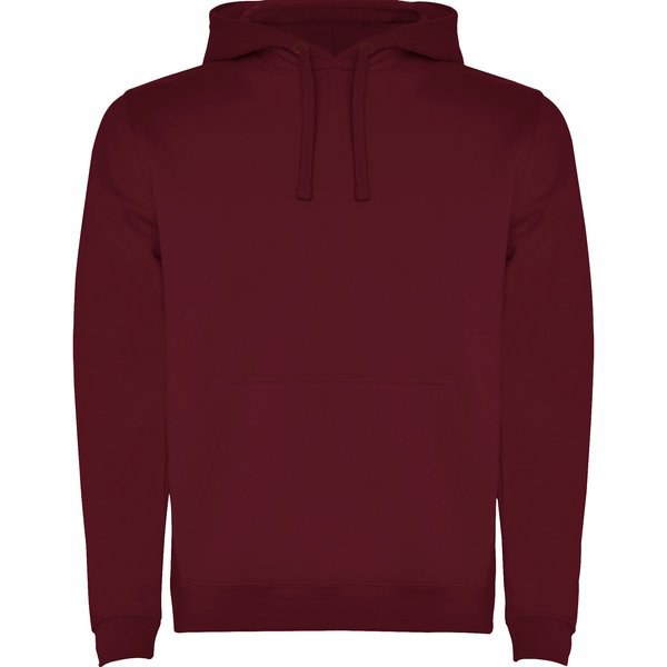 Two-colour hoodie with double fabric, contrasting adjustable drawcord, reinforced covered seams in collar and kangaroo style pocket.