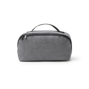 Toiletry bag made from RPET 600D with diagonal zip closure.
