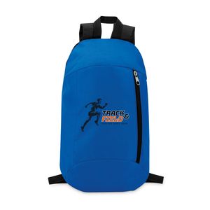 Backpack in 600D polyester with zippered outside pocket and for comfort a padded back section in 210D polyester.