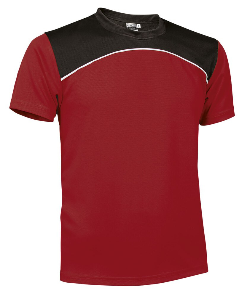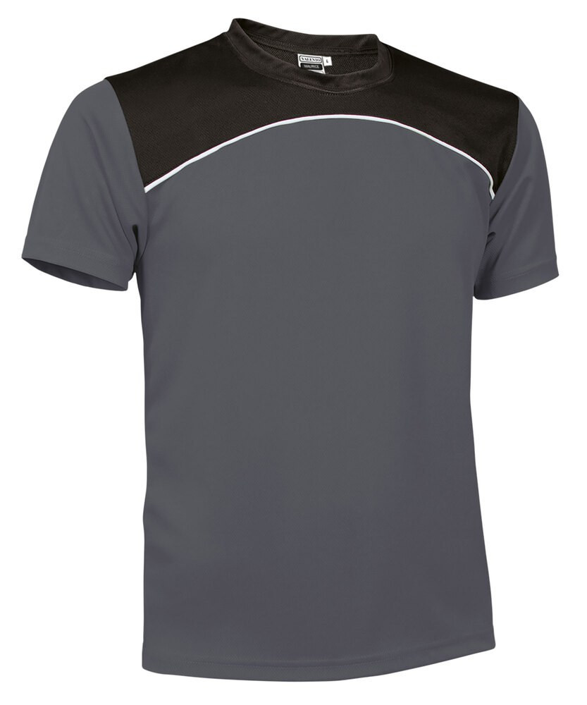 Three-Tone Short Sleeve Crewneck Sports T-Shirt. Made of Bird-Eye breathable technical fabric, that promotes sweat wicking and quick-drying, ensuring optimal comfort.Made with black yoke and white curved piping, combined with contrasting body in bright colours. Double stitching on the bottom hem, sleeves and armholes for added strength and durability. Suitable marking methods: screen printing, embroidery, transfer printing, vinyl application. Ideal as sportswear and workout activities.