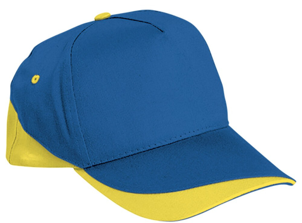 Two-Tone 5-Panel Cap.Made of 100% cotton twill fabric for durability, strength and breathability.Four embroidered vents for better airflow, curved visor to prevent sunlight and provide freshness.Vertical front panel with thermo-fixed inner reinforcement to keep its shape, an inner band around the contour for greater comfort.Semi-circular back opening with velcro fastening tab for a secure fit. Seamless vertical front panel for easy marking with different methods: screen printing, embroidery, vinyl application, transfer printing.Ideal as sportswear, for a corporate gift, souvenir, merchandising, and more.