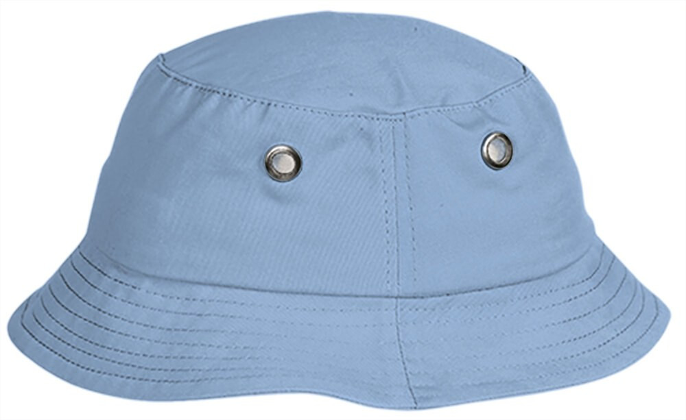 Bucket Hat with All-Around Brim. Made of 100% cotton fabric that provides durability, strength, breathability and a comfortable feel. Four metal vents for better airflow, a slanted and flexible brim to prevent sunlight and provide freshness. Smooth crown and side seams along the contour for added strength and durability. An inner band around the contour for greater comfort.Seamless front for easy marking with different methods: screen printing, embroidery, vinyl application, transfer printing.Ideal for a corporate gift and for outdoor activities.