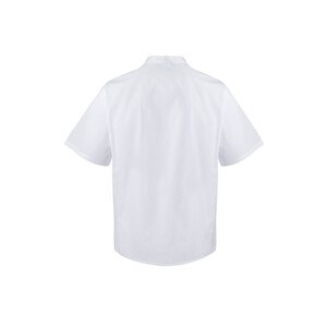 Short-sleeved poplin (110g/m²) kitchen jacket in cotton (35%) and polyester (65%). With double button fastening system and 1 chest pocket